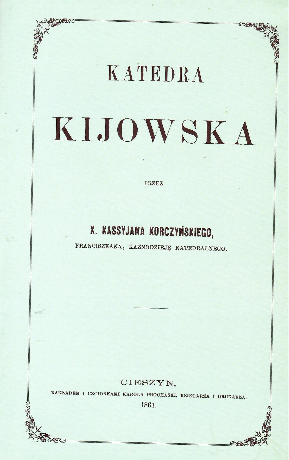 Katedra Kijowska przez X. Kassyjana Korczyńskiego, Franciszkana, kaznodzieję katedralnego REPRINT Cieszyn 1861