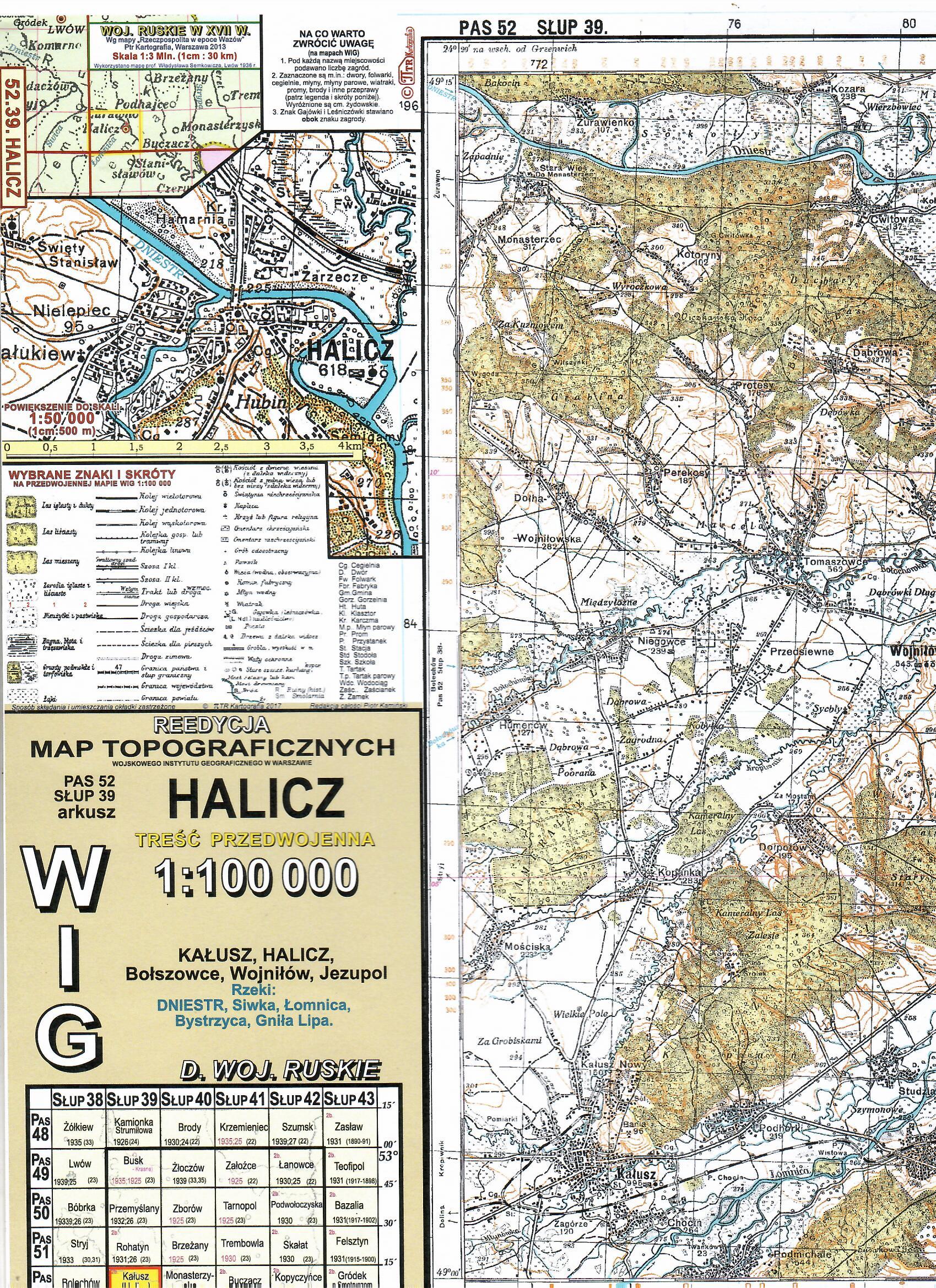 Treść przedwojenna: Kałuszyn, Halicz, Bołszowce, Wojniłów, Jezupol Rzeki: Dniestr, Siwka, Łomnica, Bystrzyca, Gniła Lipa