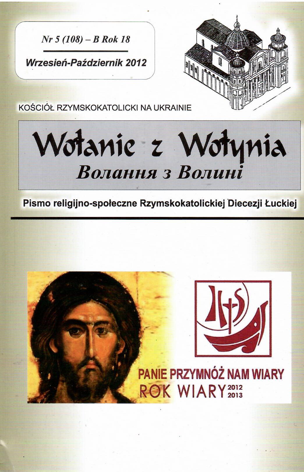 Wołanie z Wołynia nr 5 (108) wrzesień – październik 2012                                   Kościół Rzymsko –  katolicki na Ukrainie. Pismo religijno – społeczne Rzymskokatolickiej Diecezji Łuckiej
